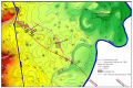 Fig. 3 – Elevation map of NE Belgium showing SW border faults of the Roer Valley graben, and location of the SAFE study area with respect to the Bree fault scarp.