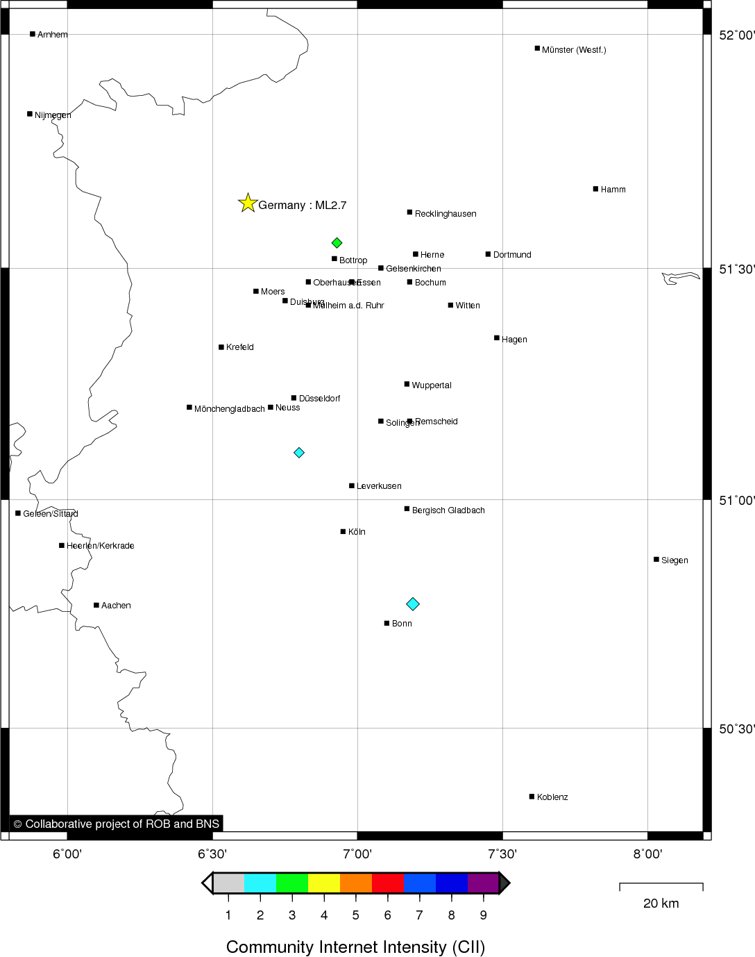Epicentral coordinates 51.639° N, 6.624° E Uncertainty ± 6.2 km