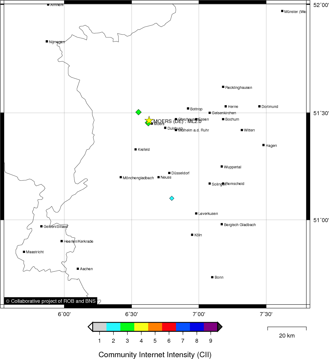 Epicentral coordinates 51.464° N, 6.630° E Uncertainty ± 9.7 km