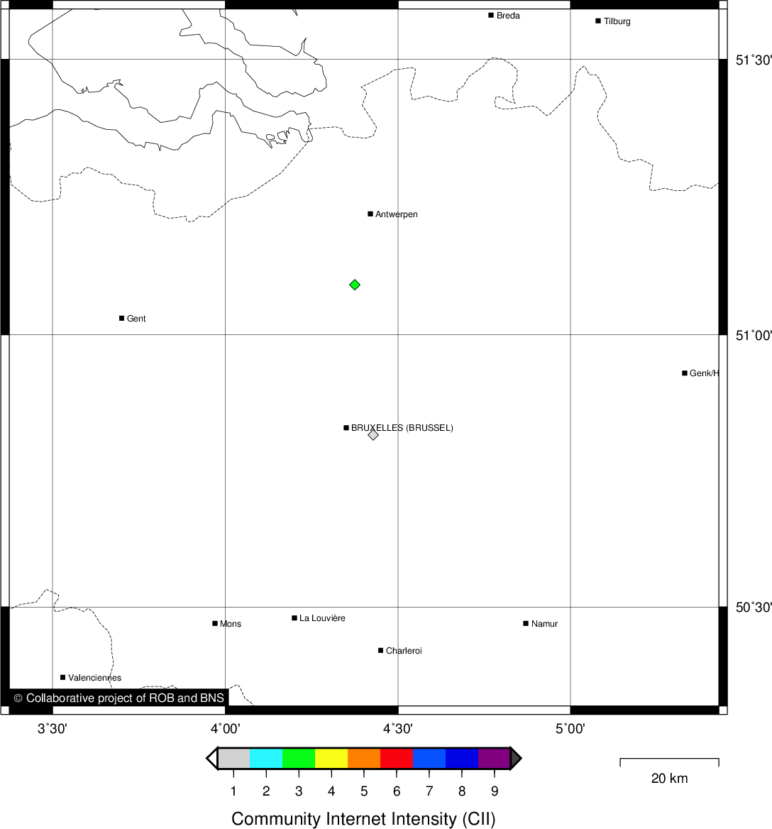 Epicentral coordinates 50.531° N, 5.888° E Uncertainty ± 0.5 km