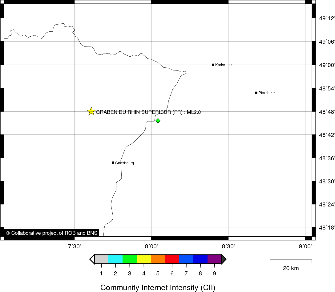 Epicentral coordinates 48.800° N, 7.610° E Uncertainty ± 5.0 km