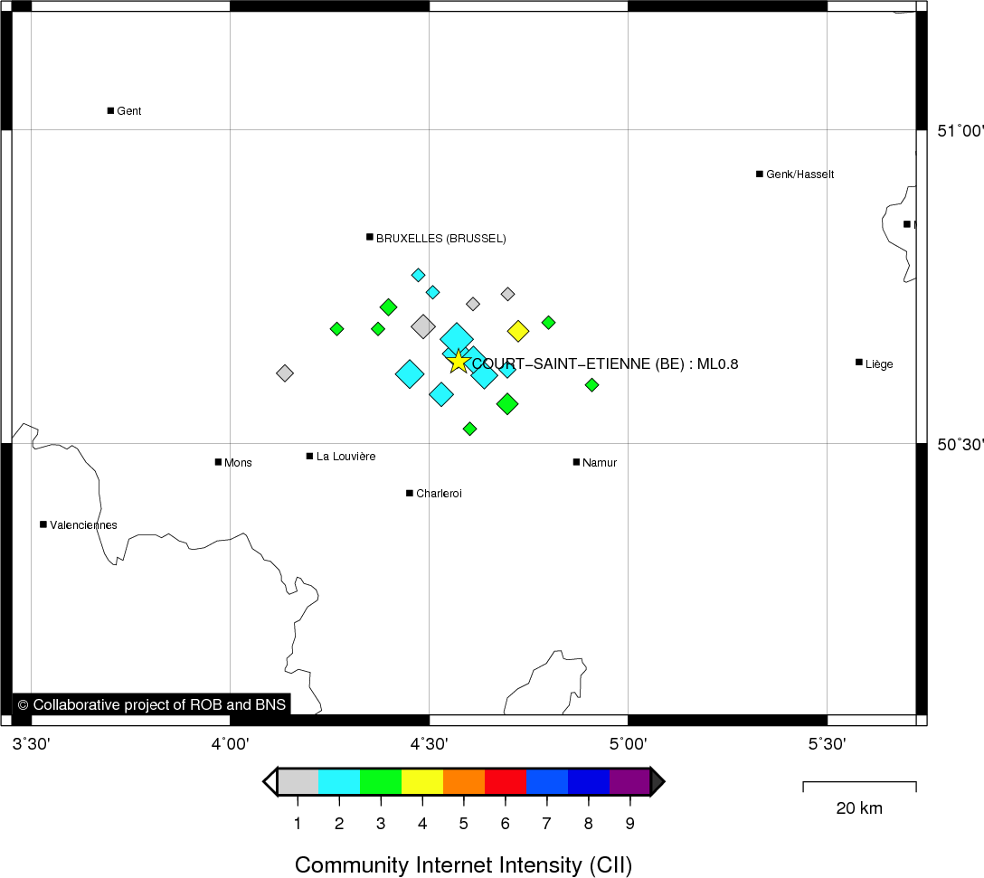 | Epicentral coordinates | 50.631° N, 4.574° E Uncertainty ± 0.7 km |