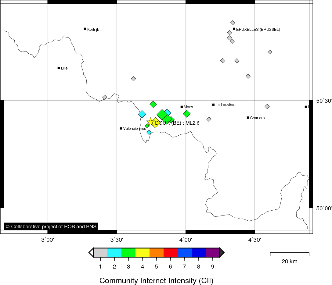 | Coordonnées de l'épicentre | 50.403° N, 3.786° E Incertitude ± 1.0 km |