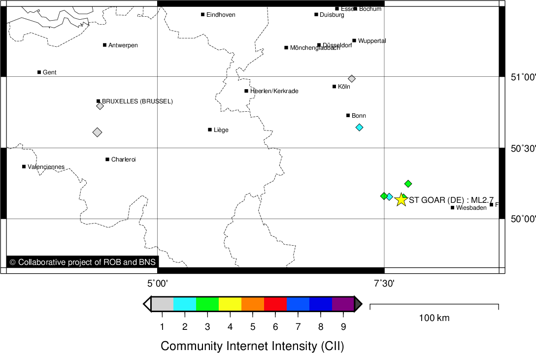 Coordonnées de l'épicentre 50.133° N, 7.688° E Incertitude ± 1.9 km