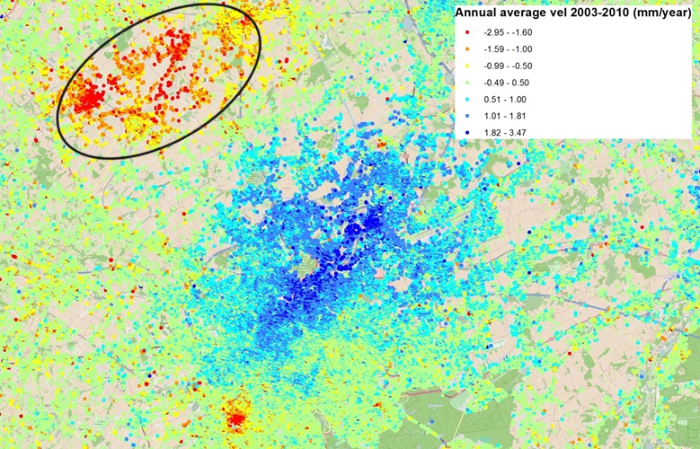 - a test area where strong ground movements (subsidence) are known due to groundwater pumping activities (Jülich, Germany).