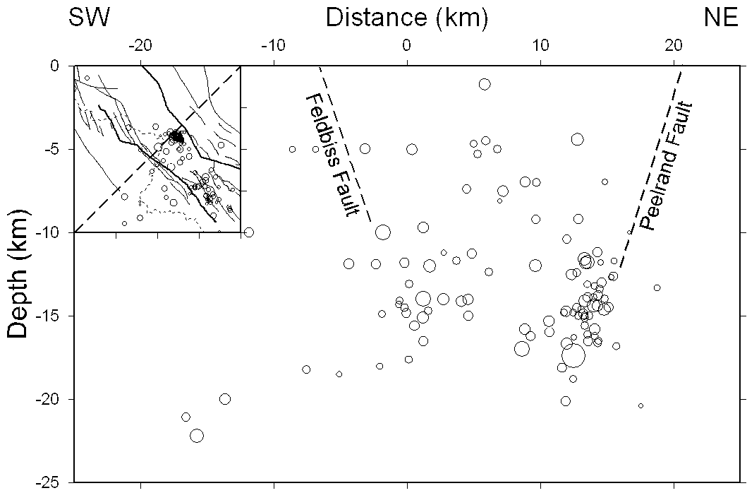 Zo lag het hypocentrum van de Roermond-aardbeving van 1992 op een diepte van 17km, precies op de Peelrandbreuk die ongeveer 60° naar het zuidwesten helt. De naschokken van de Roermond-aardbeving definiëren een vlak waarvan de verderzetting naar het oppervlak toe overeenstemt met de Peelrandbreuk (hoewel de helft van de mechanismen WZW-ONO oriëntaties aangeeft!). Ook de aardbeving van Uden in 1932 vond wellicht plaats op het noordelijk uiteinde van de Peelrandbreuk. Aardbevingen langs de westrand van de Roerdalslenk, zoals bv. de aardbeving van Alsdorf in 2002, hebben een mechanisme waarvan de helling suggereert dat ze ontstaan zijn langs de Feldbiss-breukzone. De seismische activiteit kan dus in verband worden gebracht met de actieve breuken die aan het aardoppervlak worden waargenomen.
