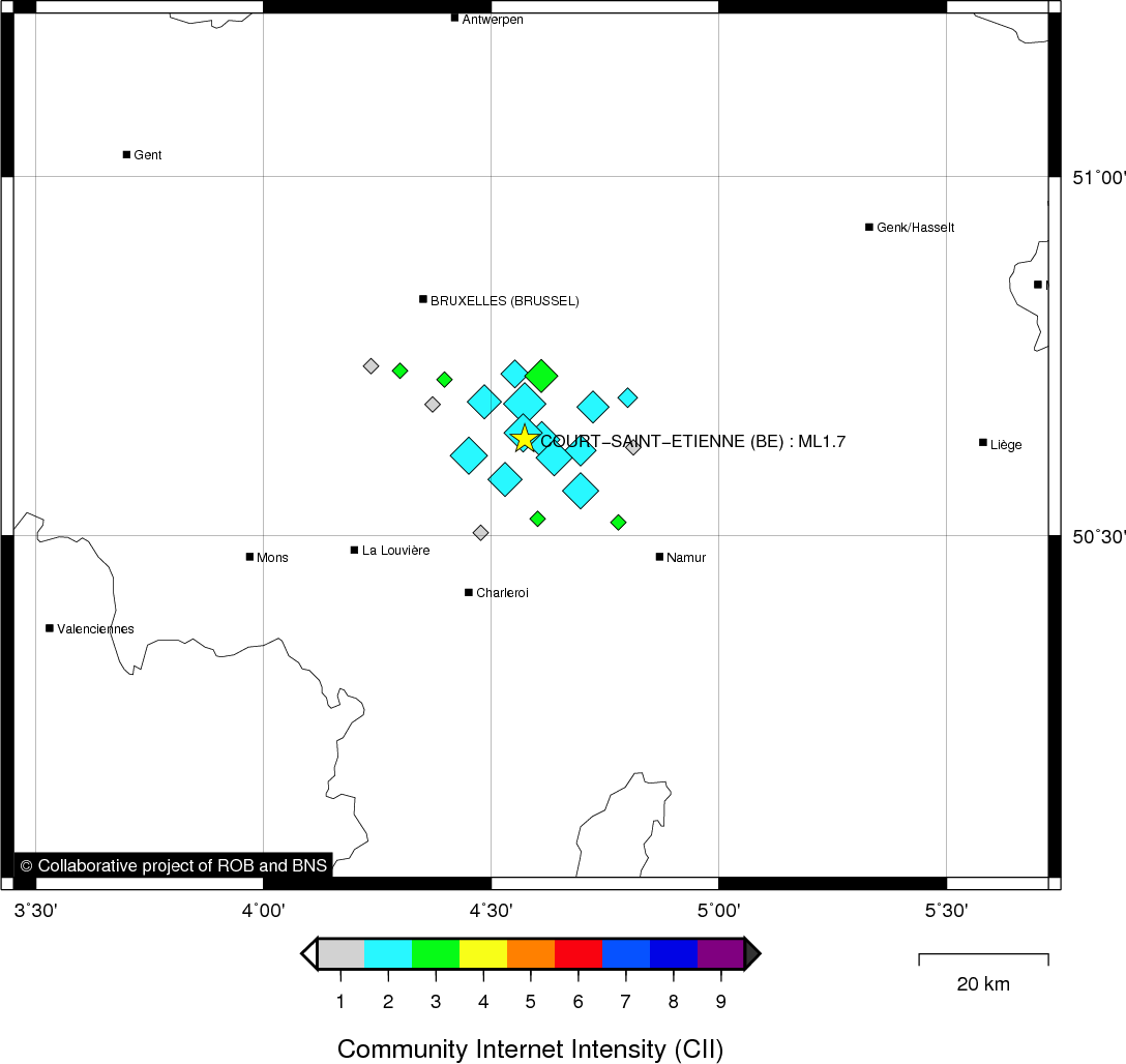 Waarschuwing! De intensiteiten afkomstig van de macroseismische enquête zijn ruwe gegevens die nog niet geverifieerd werden.