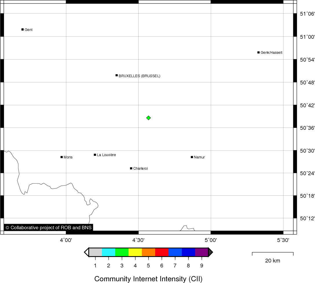 Waarschuwing! De intensiteiten afkomstig van de macroseismische enquête zijn ruwe gegevens die nog niet geverifieerd werden.