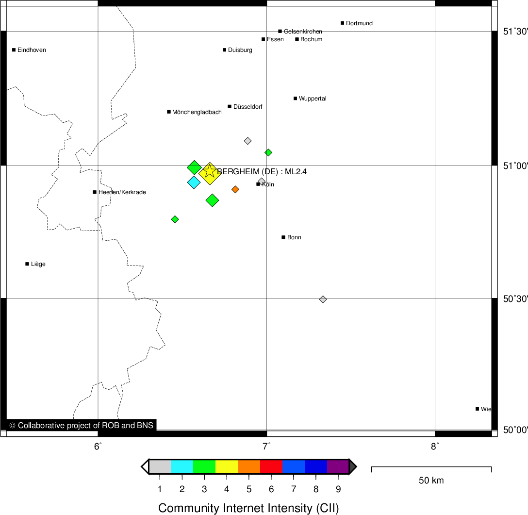 Waarschuwing! De intensiteiten afkomstig van de macroseismische enquête zijn ruwe gegevens die nog niet geverifieerd werden.