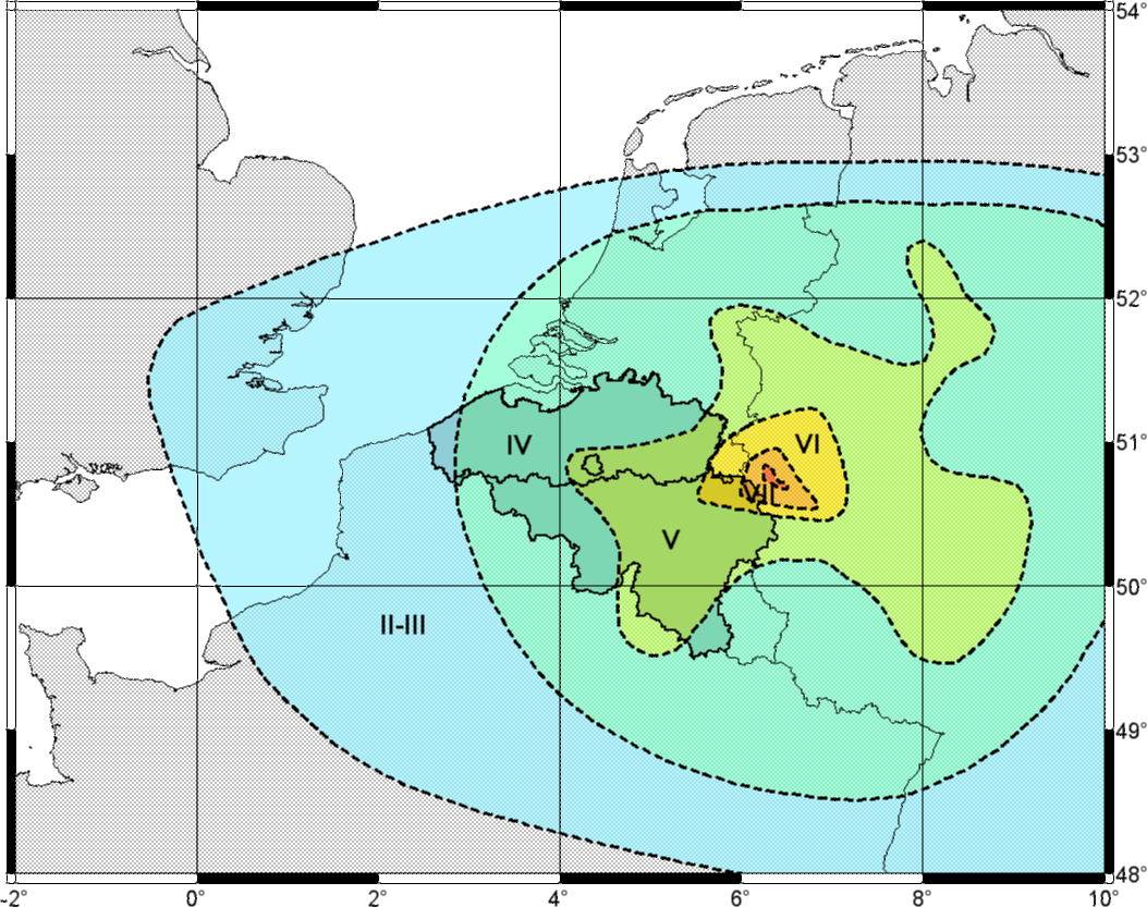 Sedert 1932 voert de KSB na elke aardbeving die in België gevoeld wordt, een enquête uit naar de effecten ervan in België. Aan de hand van de gerapporteerde gewaarwordingen en de eventuele schade kan dan een zogenaamde macroseismische kaart opgesteld worden die de verdeling van de intensiteit van de aardbeving weergeeft. Op dergelijke kaart worden zones van gelijke intensiteit afgebakend door zogenaamde isoseisten. Hoewel deze methode grotendeels ontwikkeld werd vóór de ontwikkeling van de seismograaf, vormen macroseismische kaarten een welkome aanvulling op de metingen door seismografen. Ze geven een goed beeld van de complexe verdeling van de grondbewegingen en de aard van de aangerichte schade, ook op plaatsen waar geen meetinstrumenten zijn opgesteld. Deze kaarten spelen ook een rol bij het bepalen van de bouwcodes in ons land.